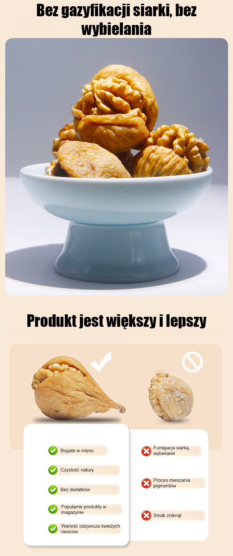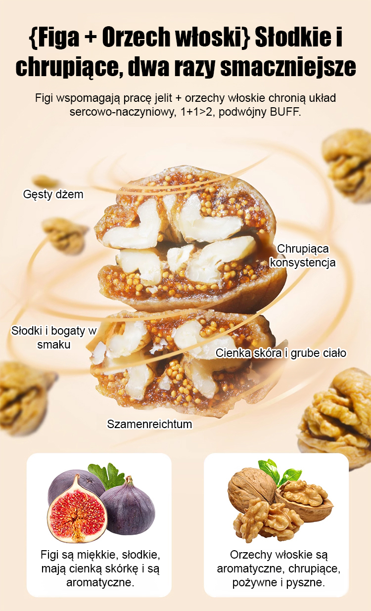Przekąska z suszonych fig nadziewanych orzechami włoskimi.