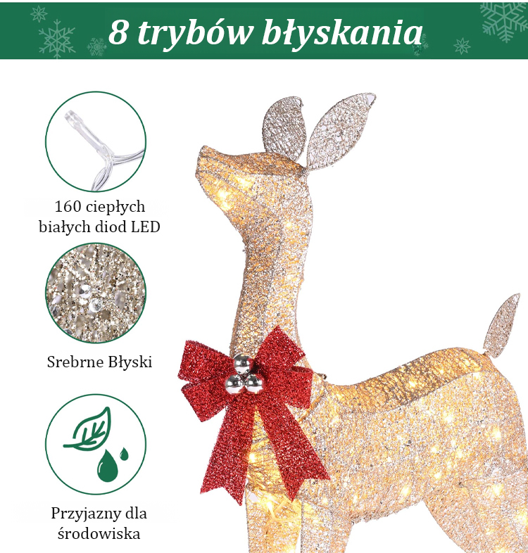 🎄Limitowana edycja świąteczna, 3-częściowy zestaw ozdób reniferowych🎅Wiele trybów oświetlenia🌈Niezbędny element świątecznej atmosfery!