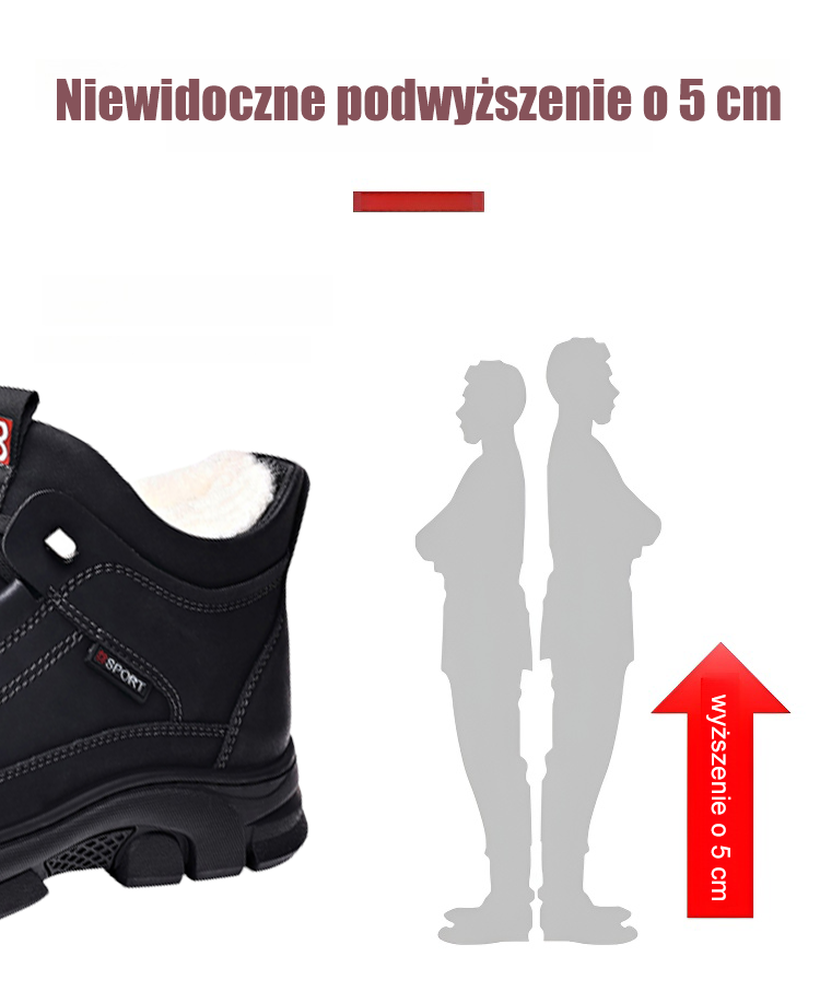 🥾 Ciepłe buty ze skóry bydlęcej|🐂 Wysokiej jakości skóra bydlęca · 🔥 Pogrubione dla ciepła · ↗️ Niewidoczne 5 cm podniesienie wzrostu · 🛡️ Antypoślizgowe i stabilne
