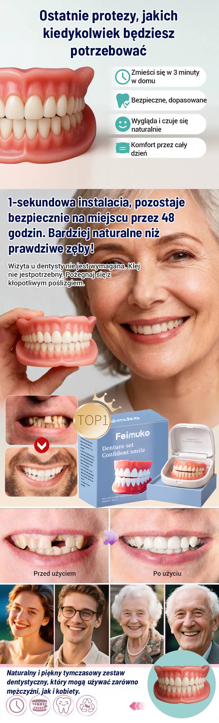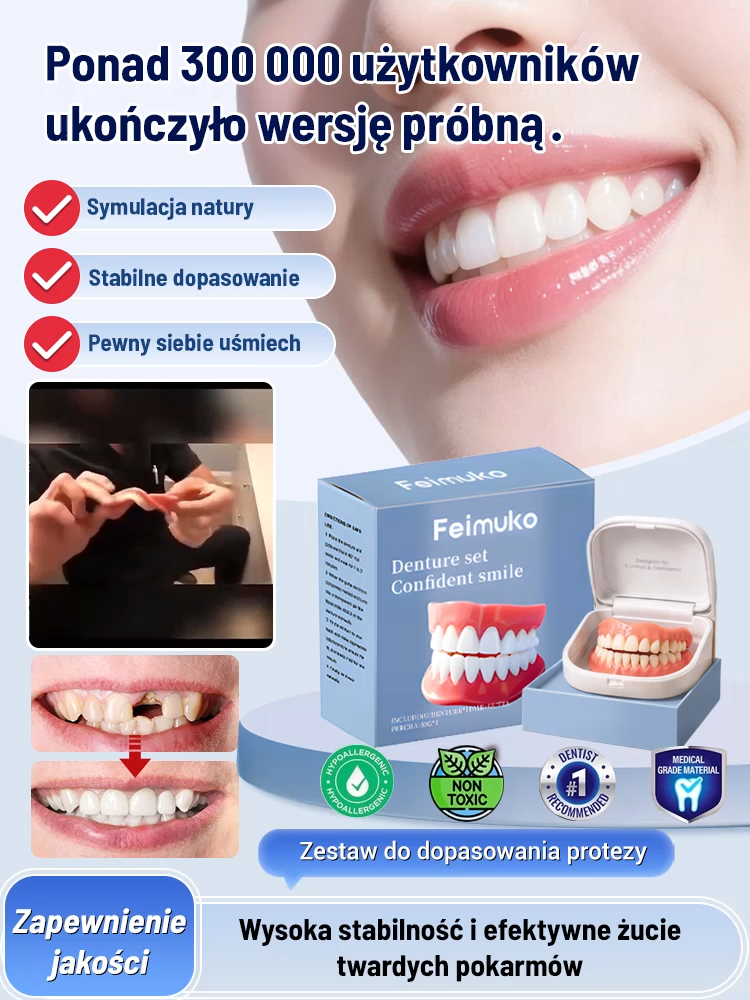 Zestaw do odbudowy zębów z certyfikatem FDA – kup 1, a drugi dostaniesz gratis! 3-minutowe dopasowanie, bezklejowe i stabilne✨
