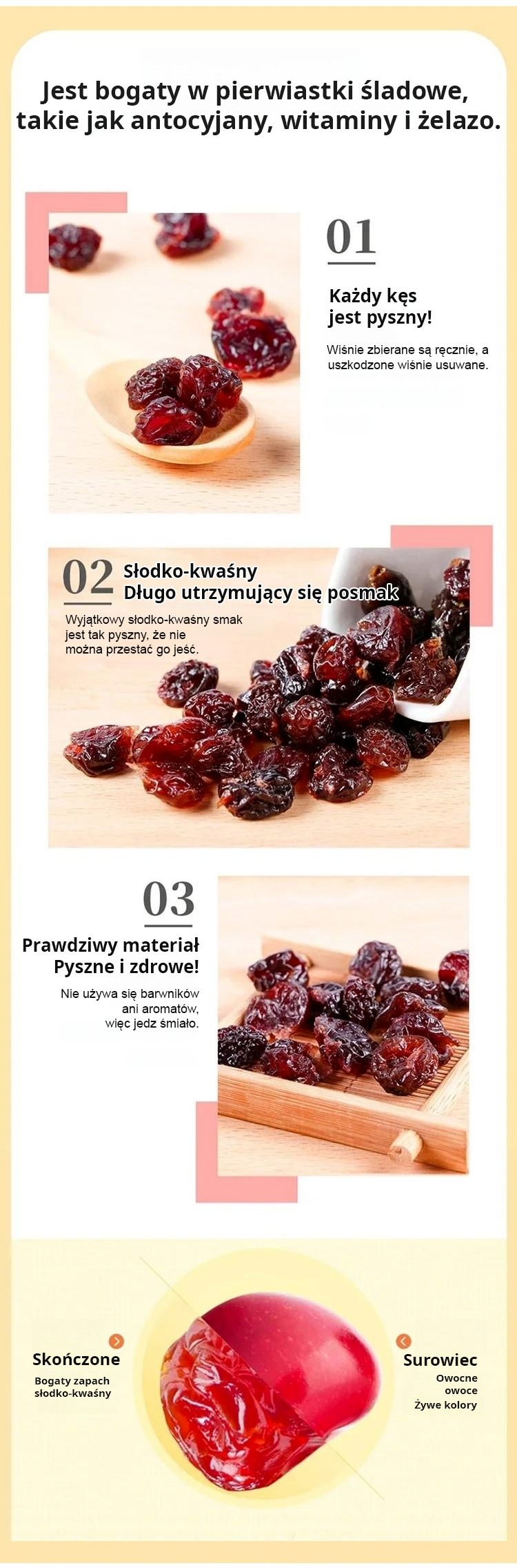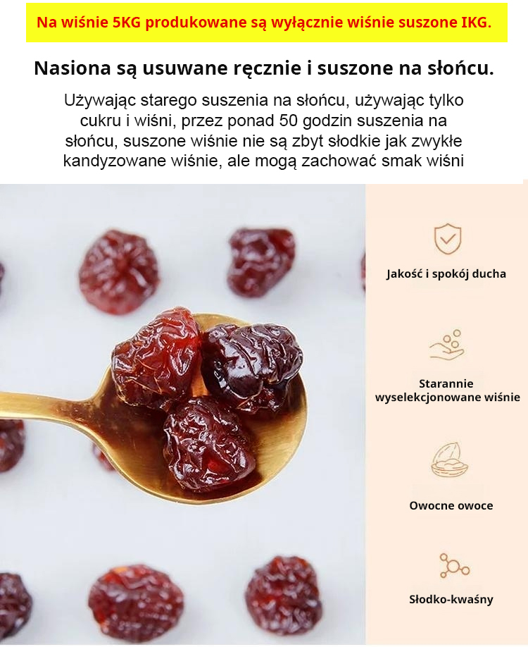 【🍒Kup jeden, drugi gratis】 Wiśnie zbierane ręcznie z sadu! 🌟Suszone wiśnie, 2,2 kg świeżych owoców zredukowane do 450 g suszonych owoców